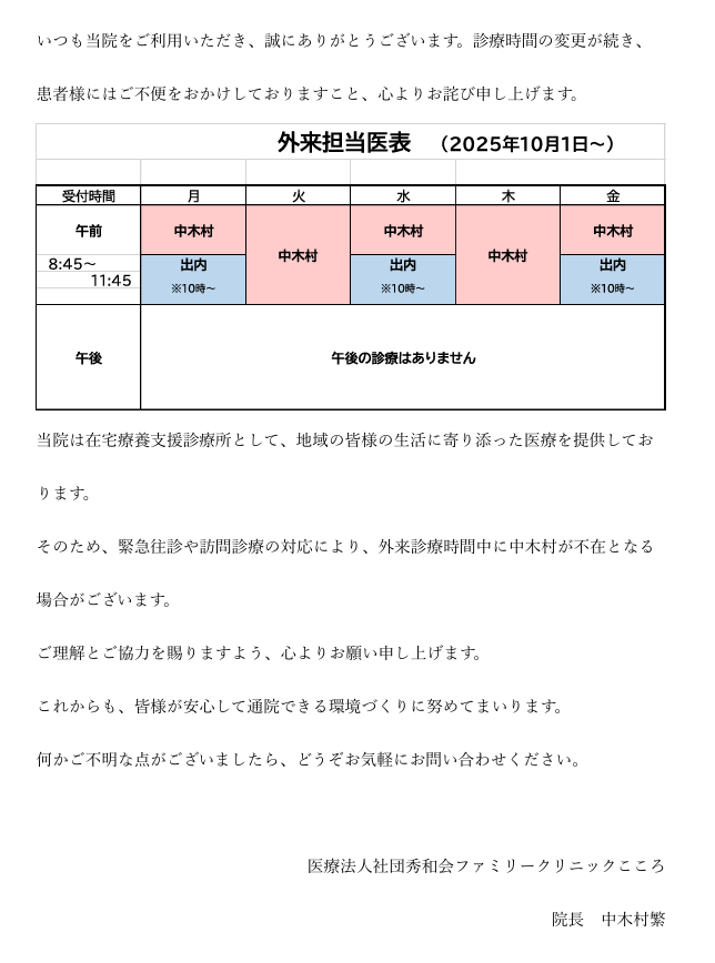 外来診療のご案内